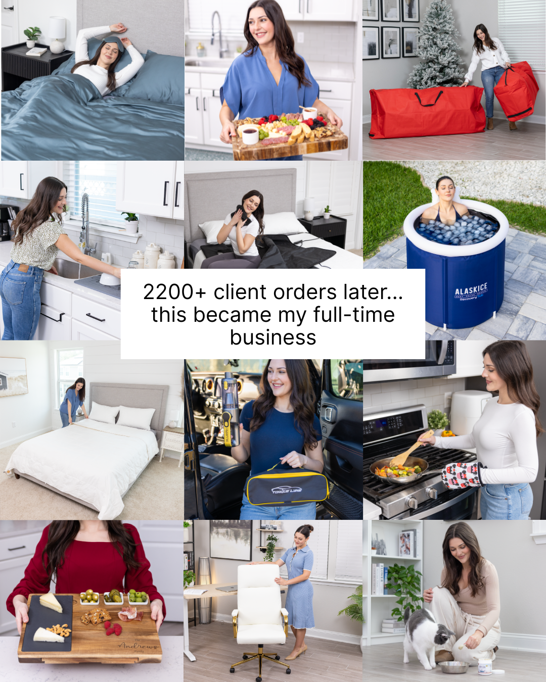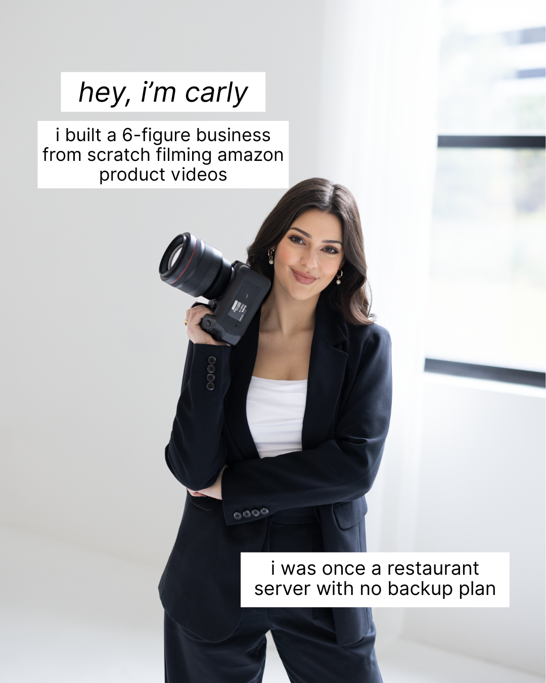 Hi! I’m Carly — a product photographer and videographer who built a six-figure business creating Amazon product content… without a huge following, studio, or team.